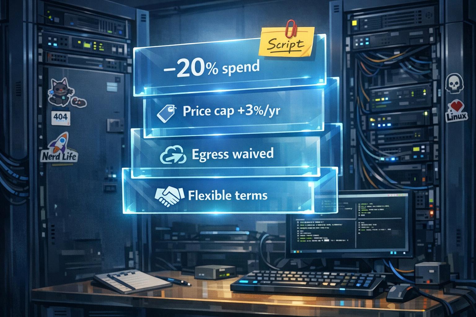 - Request better terms: Cap price hikes at 3–5%, waive egress fees, and secure flexible reduction rights for unused capacity.