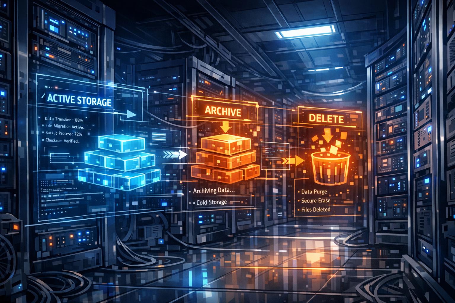 Data lifecycle policies are automated rules designed to manage how your data is stored, moved, and deleted throughout its lifespan. These policies work continuously, automatically acting based on criteria you set – like how old the data is or when it was last accessed.